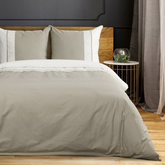 Pościel bawełniana zdobiona aplikacją z haftem szerokość: 220 cm. długość: 200 cm. kolor: beżowy. Gramatura: 115 GSM. Skład: 100% bawełna