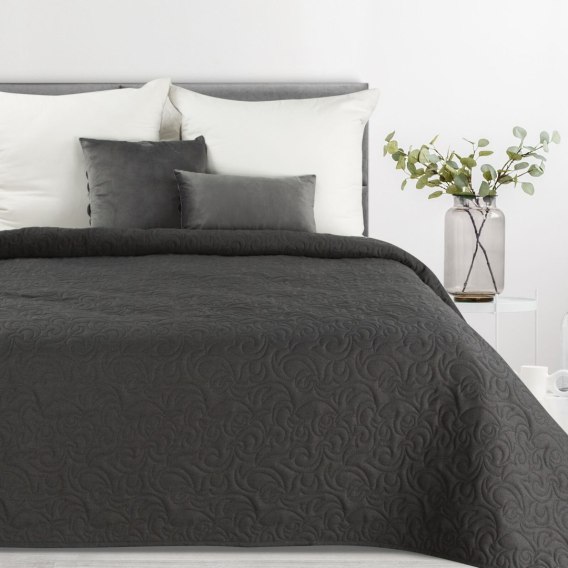 Narzuta hot press imitująca len szerokość: 170 cm. długość: 210 cm. kolor: popielaty. Gramatura: 185+120+70 GSM. Skład: 100% poliester