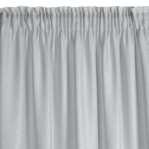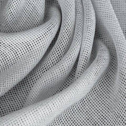 Firana gotowa o strukturze siatki szerokość: 140 cm. długość: 270 cm. kolor: srebrny. Gramatura: 140 GSM. Skład: 100% poliester
