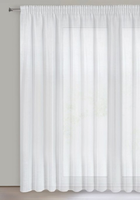 Delikatna firana w pięknym kolorze uszyta z tkaniny o strukturze drobnego deszczyku doskonale przepuszcza światło. Łatwa w prasowaniu i praniu dekoracja. szerokość: 400 cm. długość: 250 cm. kolor: biały. Gramatura: 90 GSM. Skład: 100% poliester