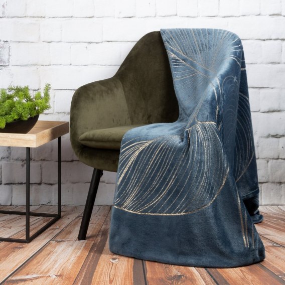Koc flano bardzo miękki w dotyku z błyszczącym nadrukiem szerokość: 150 cm. długość: 200 cm. kolor: granatowy. Gramatura: 250GSM GSM. Skład: 100% poliester