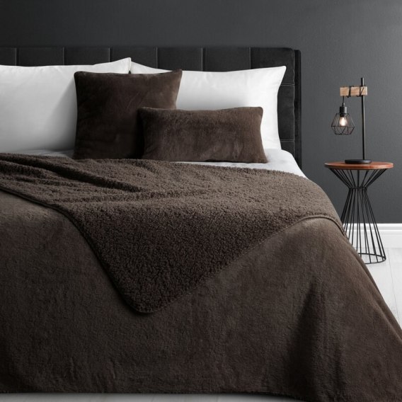 Futrzana narzuta szerokość: 170 cm, długość: 210 cm, kolor: ciemnobrązowy, Skład: 100% poliester