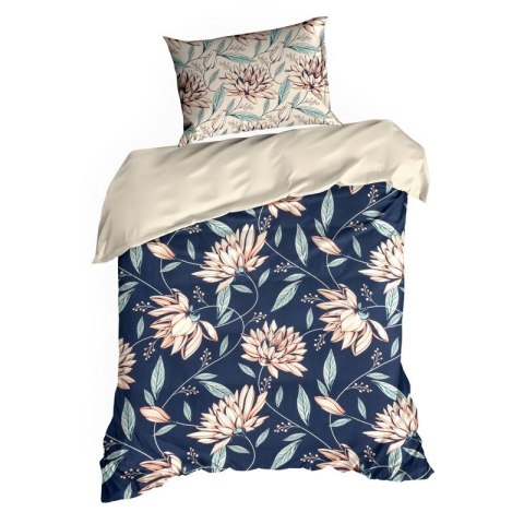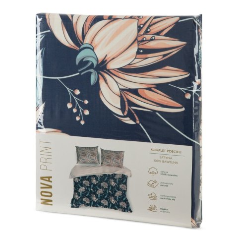 Komplet pościeli z satyny bawełnianej z nadrukiem szerokość: 220 cm. długość: 200 cm. kolor: granatowy. Gramatura: 125 GSM. Skład: satyna. 100% bawełna
