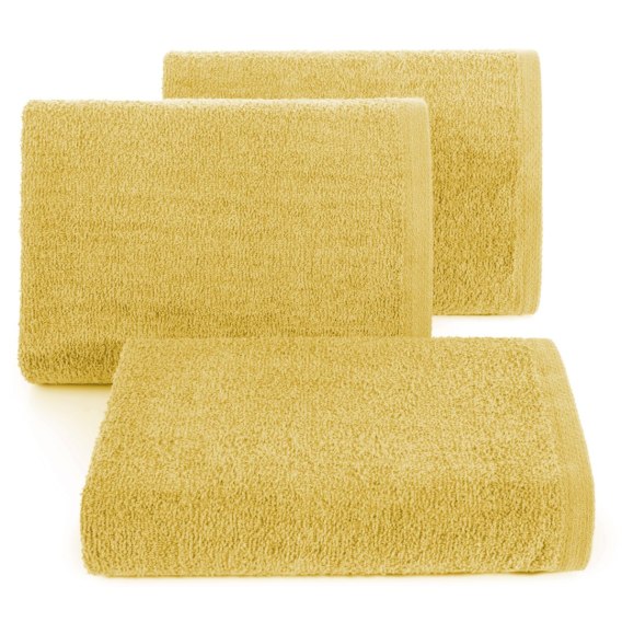 Jednokolorowy. gładki ręcznik kąpielowy z miękkiej tkaniny bawełnianej o splocie frotte. Lekki. trwały i bardzo chłonny. Kolory odporne na częste pranie. szerokość: 70 cm. długość: 140 cm. kolor: musztardowy. Gramatura: 400 GSM. Skład: 100% bawełna
