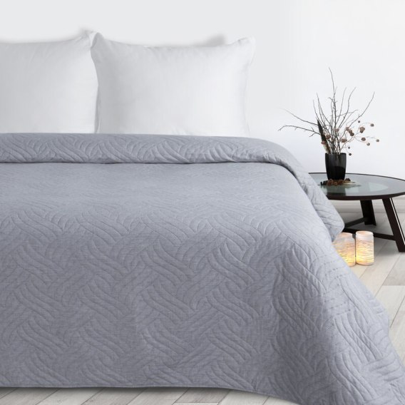Dekoracyjna narzuta na łóżko, wykonana techniką typu "hotpress" szerokość: 200 cm, długość: 220 cm, kolor: srebrny, Gramatura: 100+100+70 GSM, Skład: 100% poliester