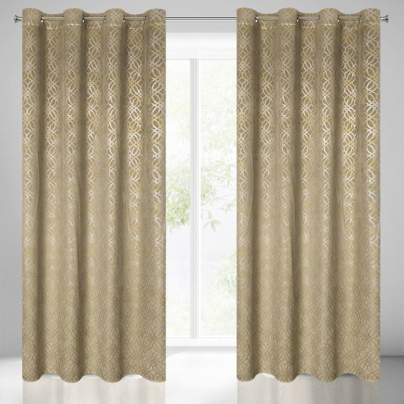 Zasłona welwetowa z szampańskim i srebrnym nadrukiem szerokość: 140 cm. długość: 250 cm. kolor: beżowy. Gramatura: 200 GSM. Skład: 100% poliester