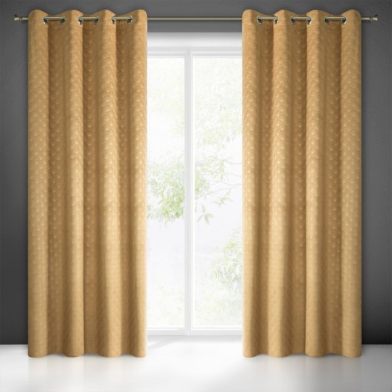 Zasłona welwetowa z efektownym wytłoczeniem szerokość: 140 cm. długość: 250 cm. kolor: musztardowy. Gramatura: 200 GSM. Skład: 100% poliester