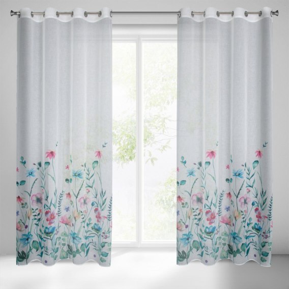 Zasłona z nadrukowanym motywem kwiatowym szerokość: 140 cm. długość: 250 cm. kolor: biały. Gramatura: 70 GSM. Skład: 100% poliester