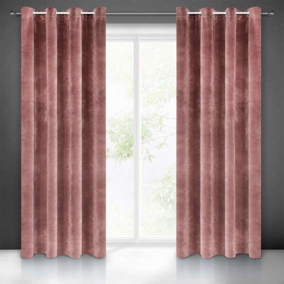 Zasłona welwetowa na 10 przelotkach szerokość: 140 cm. długość: 250 cm. kolor: ciemnoróżowy. Gramatura: 290 GSM. Skład: 100% poliester