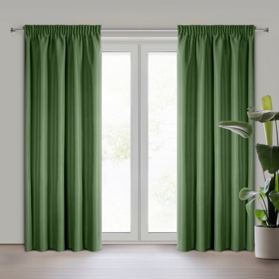 Piękna. jednokolorowa zasłona z miękkiej tkaniny o matowym wykończeniu i satynowym splocie. Uniwersalna dekoracja do każdego wnętrza. Łatwa w prasowaniu. szerokość: 140 cm. długość: 270 cm. kolor: ciemnozielony. Gramatura: 140 GSM. Skład: 100% poliester