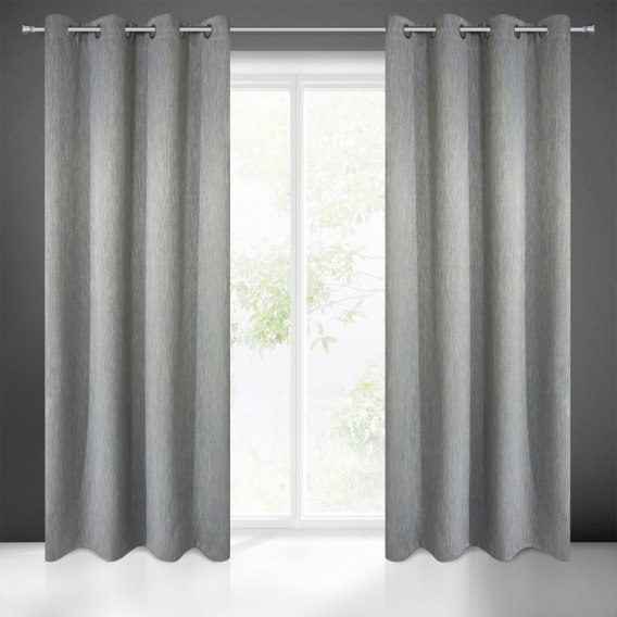Zasłona zaciemniająca jednokolorowa strukturalna typu blackout szerokość: 135 cm. długość: 250 cm. kolor: stalowy. Gramatura: 250 GSM. Skład: 100% poliester