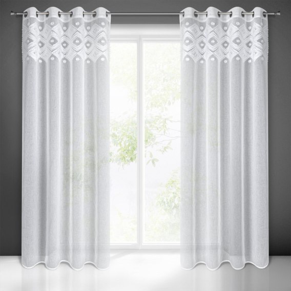 Zasłona gotowa w stylu boho szerokość: 140 cm. długość: 250 cm. kolor: biały. Gramatura: 100 GSM. Skład: 100% poliester