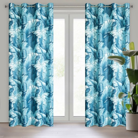 Zasłona zaciemniająca drukowana szerokość: 140 cm. długość: 250 cm. kolor: niebieski. Gramatura: 210 GSM. Skład: 100% poliester